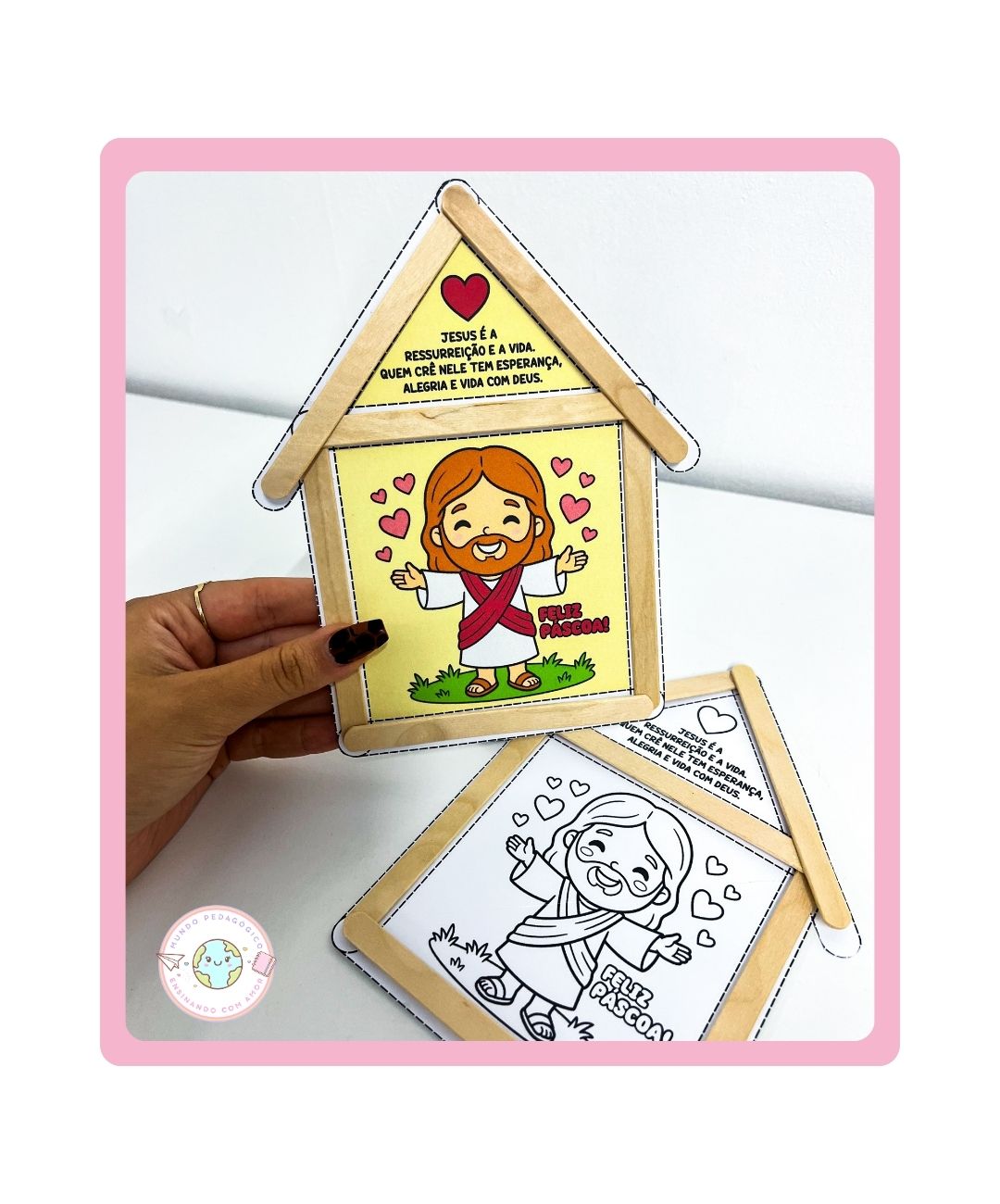 Este material interativo transforma o aprendizado em um momento memorável. Através da montagem de uma casinha com palitos de picolé, os alunos se envolvem na história da Ressurreição de Cristo, fortalecendo a fé e os valores cristãos de maneira leve e divertida.