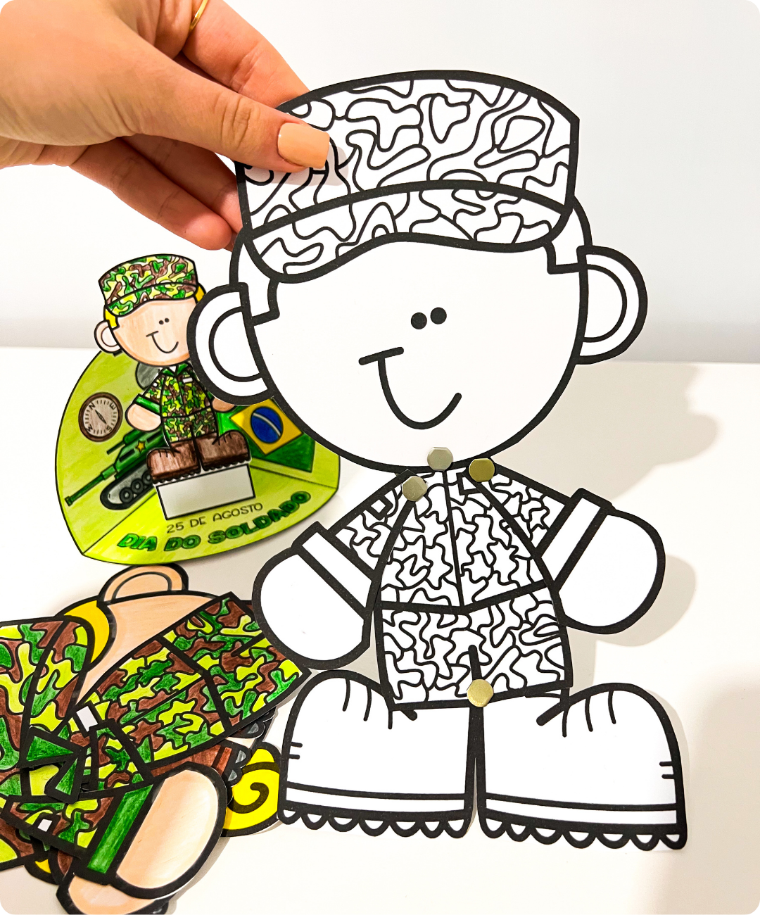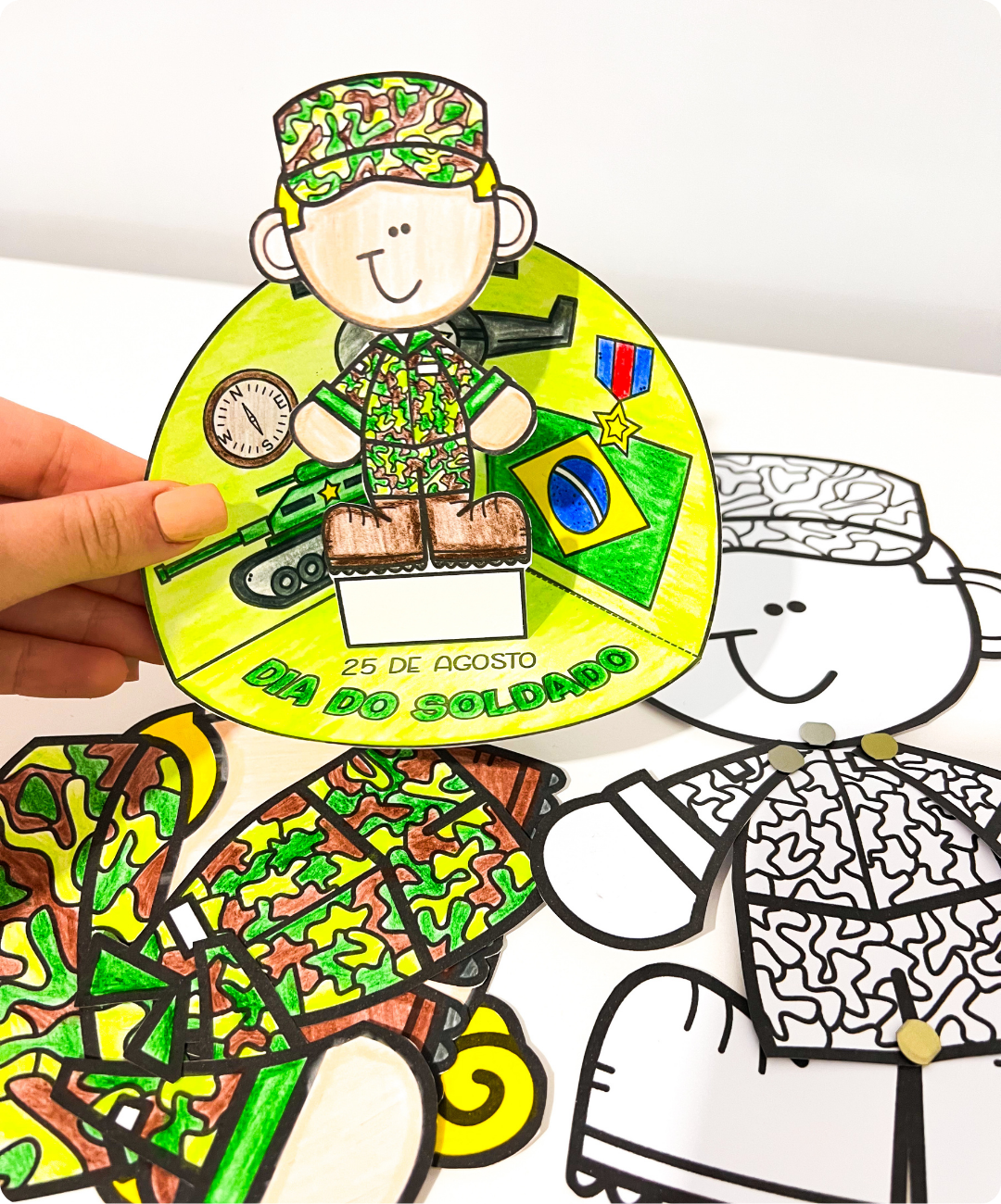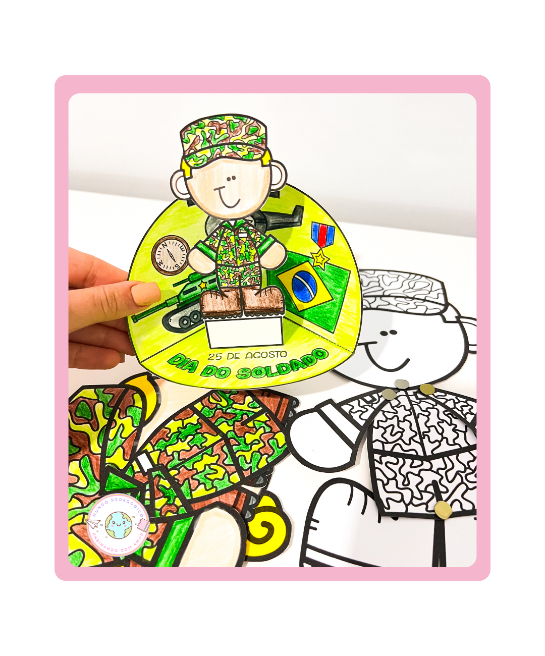 Este material foi desenvolvido para comemorar o Dia do Soldado (25 de agosto) de forma lúdica e interativa. Ele é composto por duas atividades criativas que estimulam a coordenação motora, a atenção, a imaginação e o aprendizado cultural: