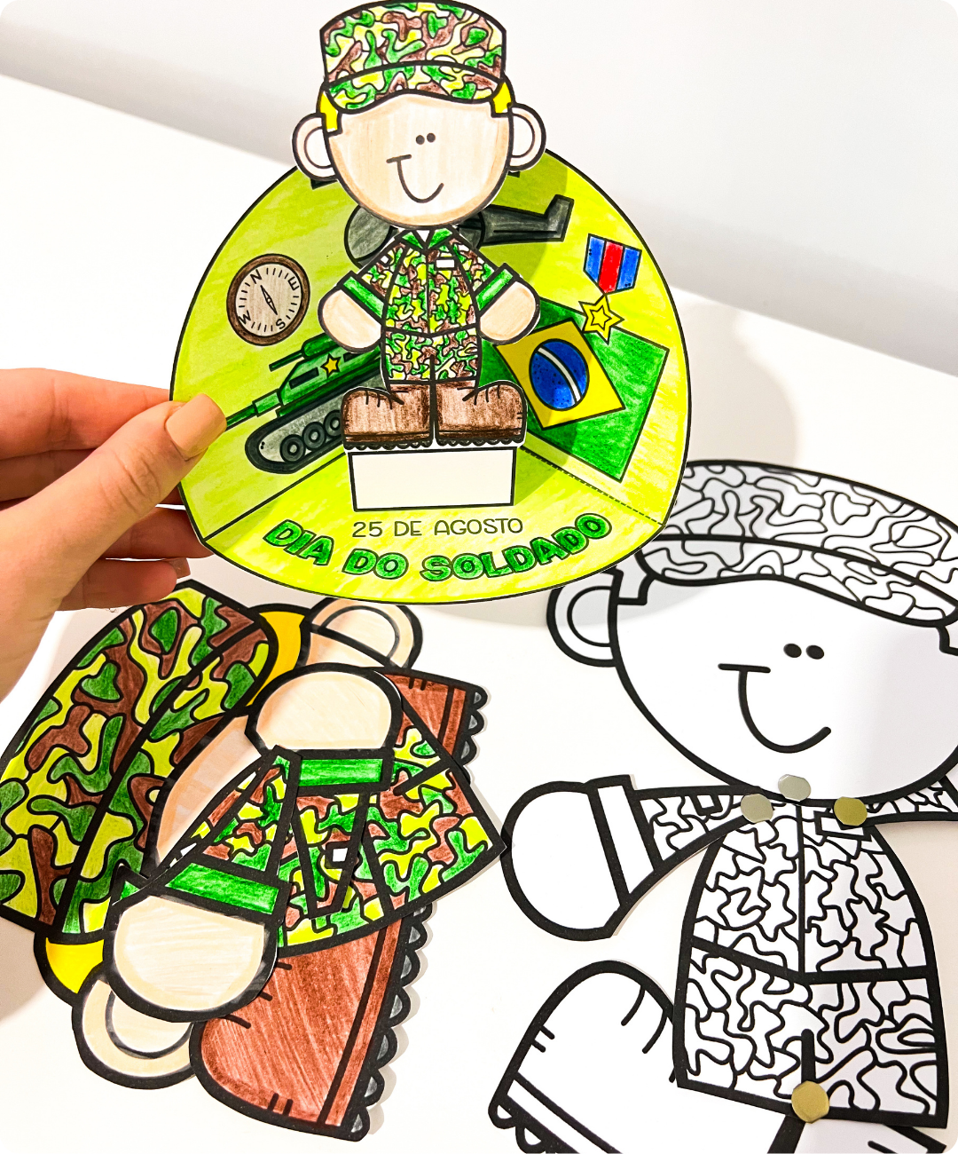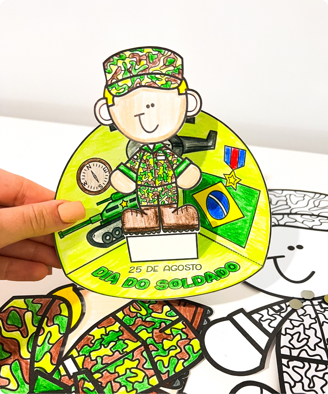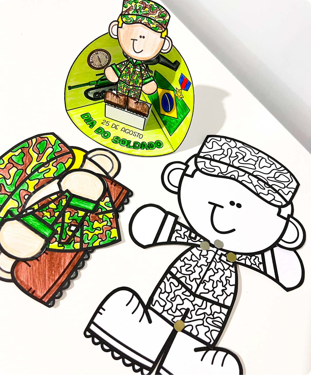 Este material foi desenvolvido para comemorar o Dia do Soldado (25 de agosto) de forma lúdica e interativa. Ele é composto por duas atividades criativas que estimulam a coordenação motora, a atenção, a imaginação e o aprendizado cultural: