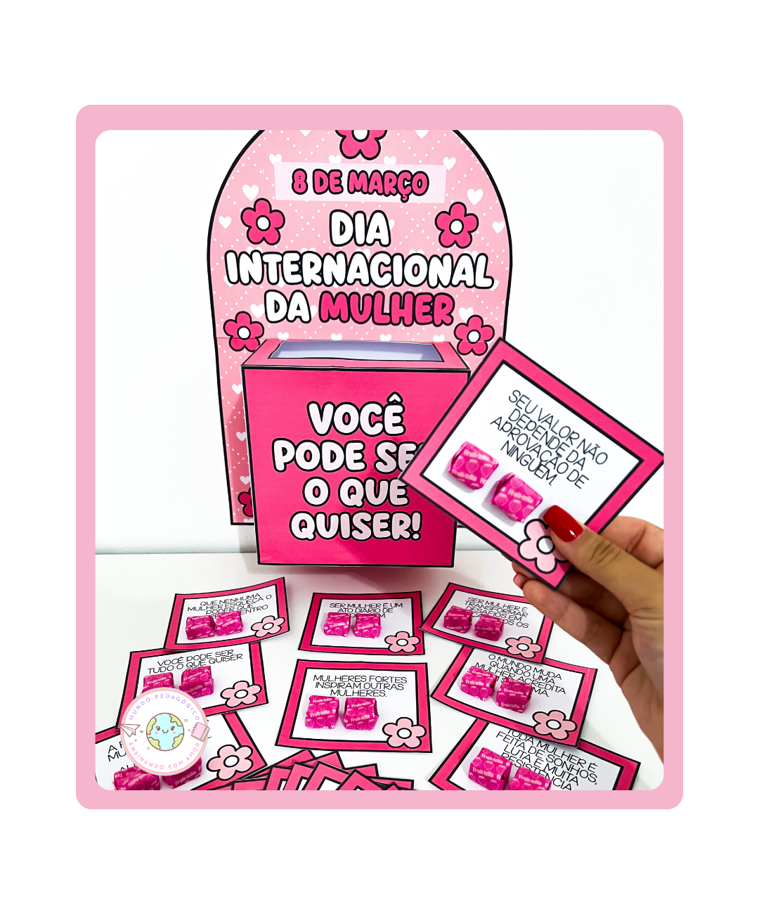 A Caixa Motivacional Dia Internacional da Mulher é a escolha ideal para quem busca uma lembrancinha criativa e personalizada para celebrar o 8 de março. Este recurso pedagógico e corporativo foi desenvolvido para homenagear com propósito, unindo carinho e inspiração em um só lugar.