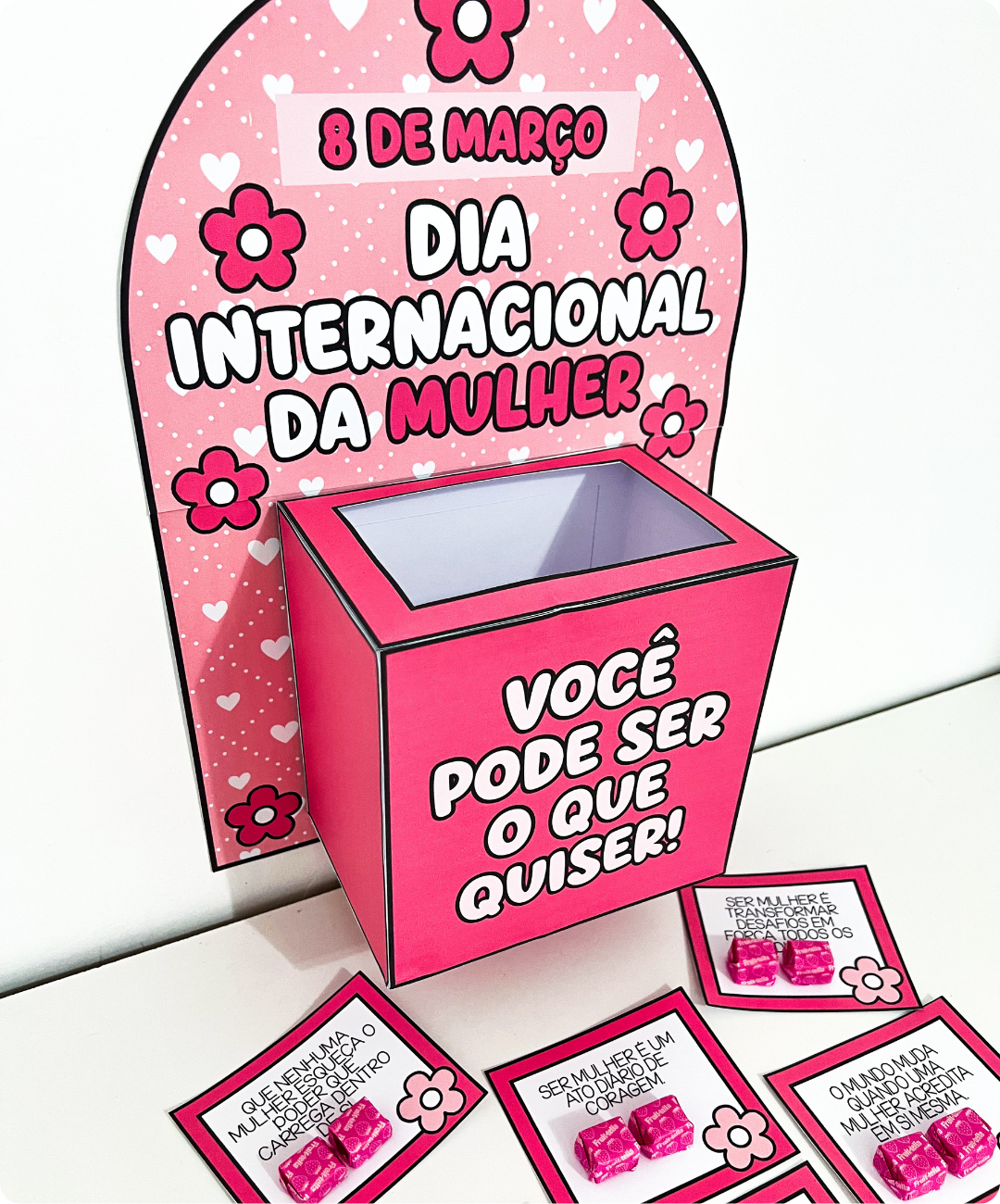 Arquivo Caixa Motivacional Dia da Mulher Pronta para Imprimir.