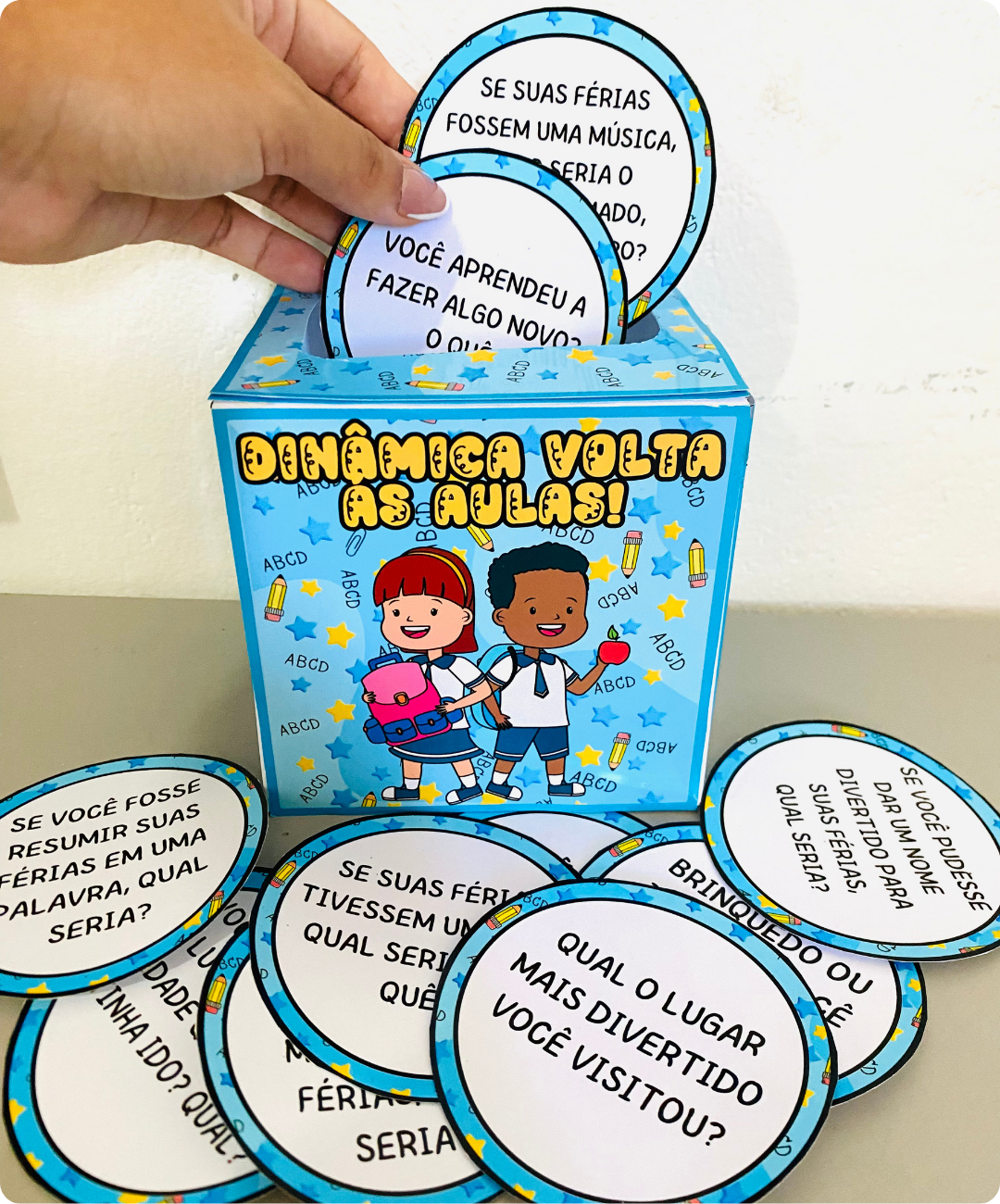 Comece a volta às aulas com uma dinâmica divertida onde os alunos compartilham histórias das férias!