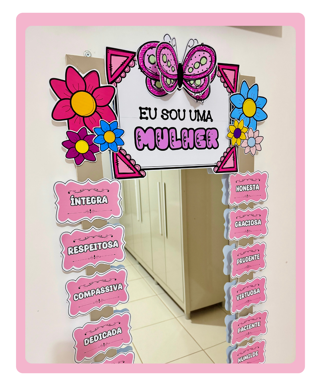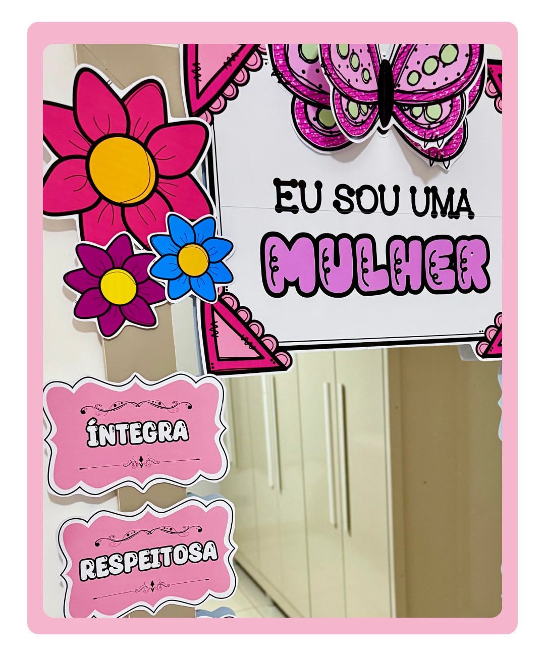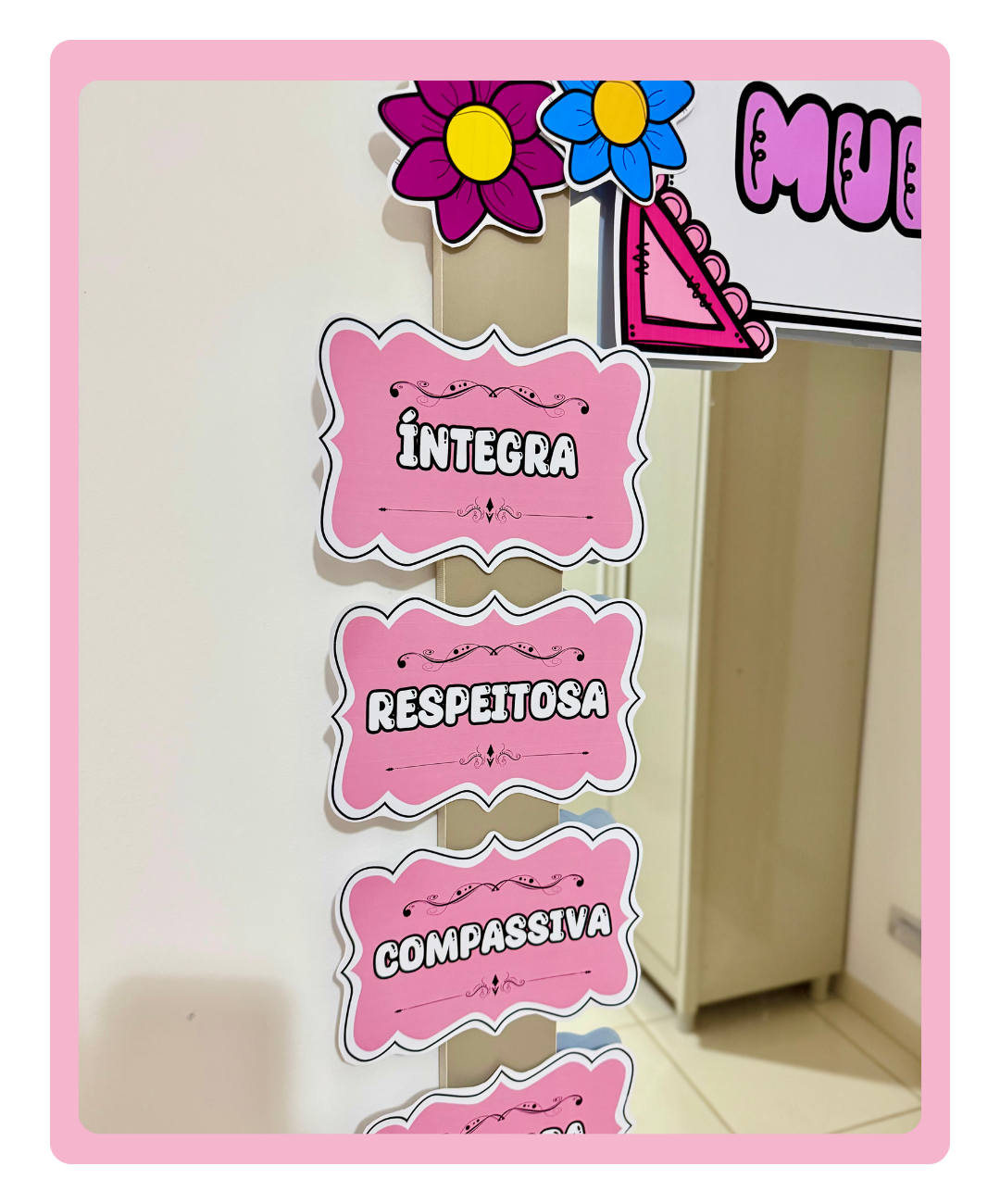 Com palavras-chave motivacionais e uma decoração encantadora, este espelho das afirmações é ideal para alunas, professoras e funcionárias.
