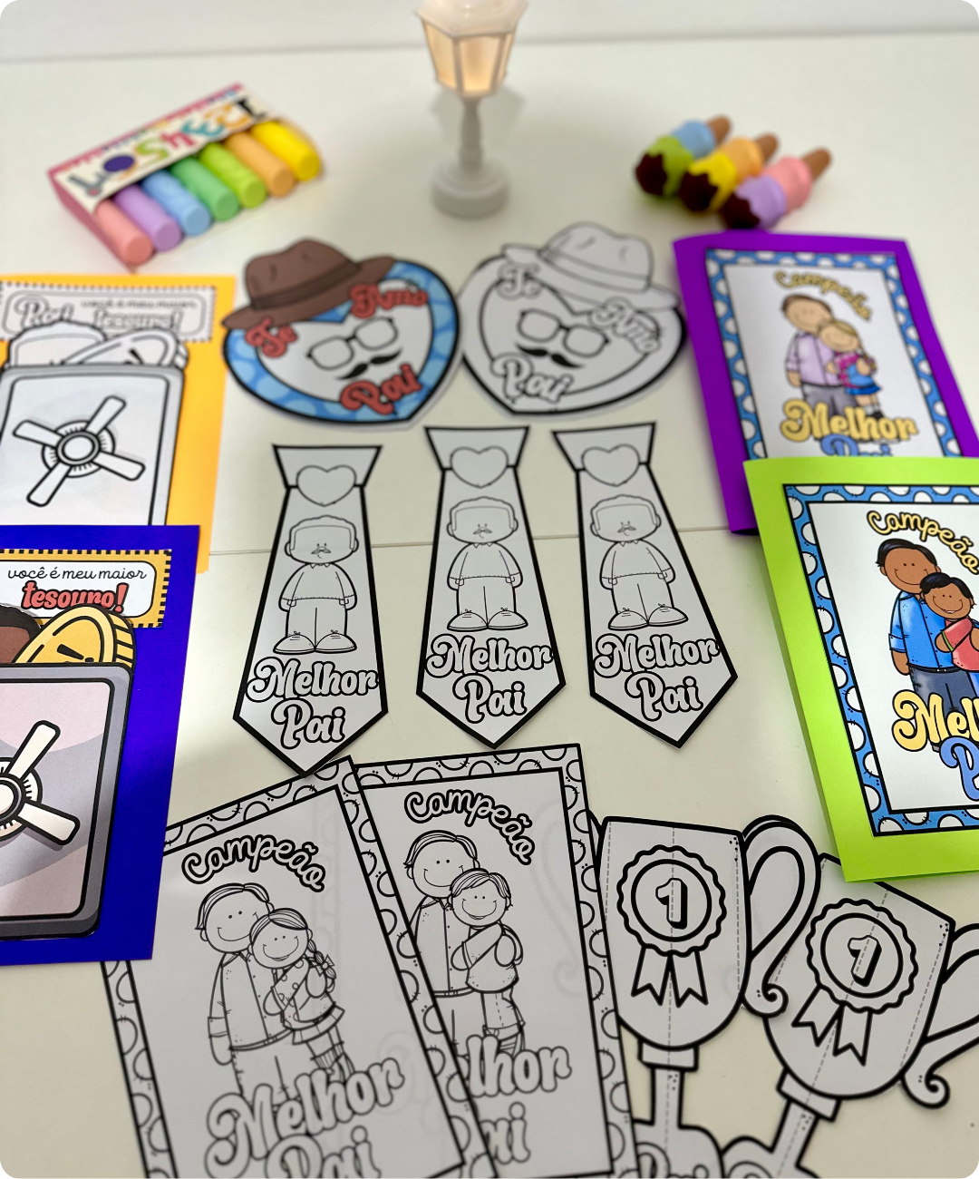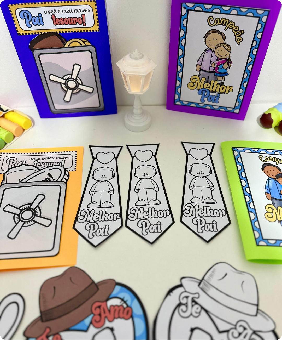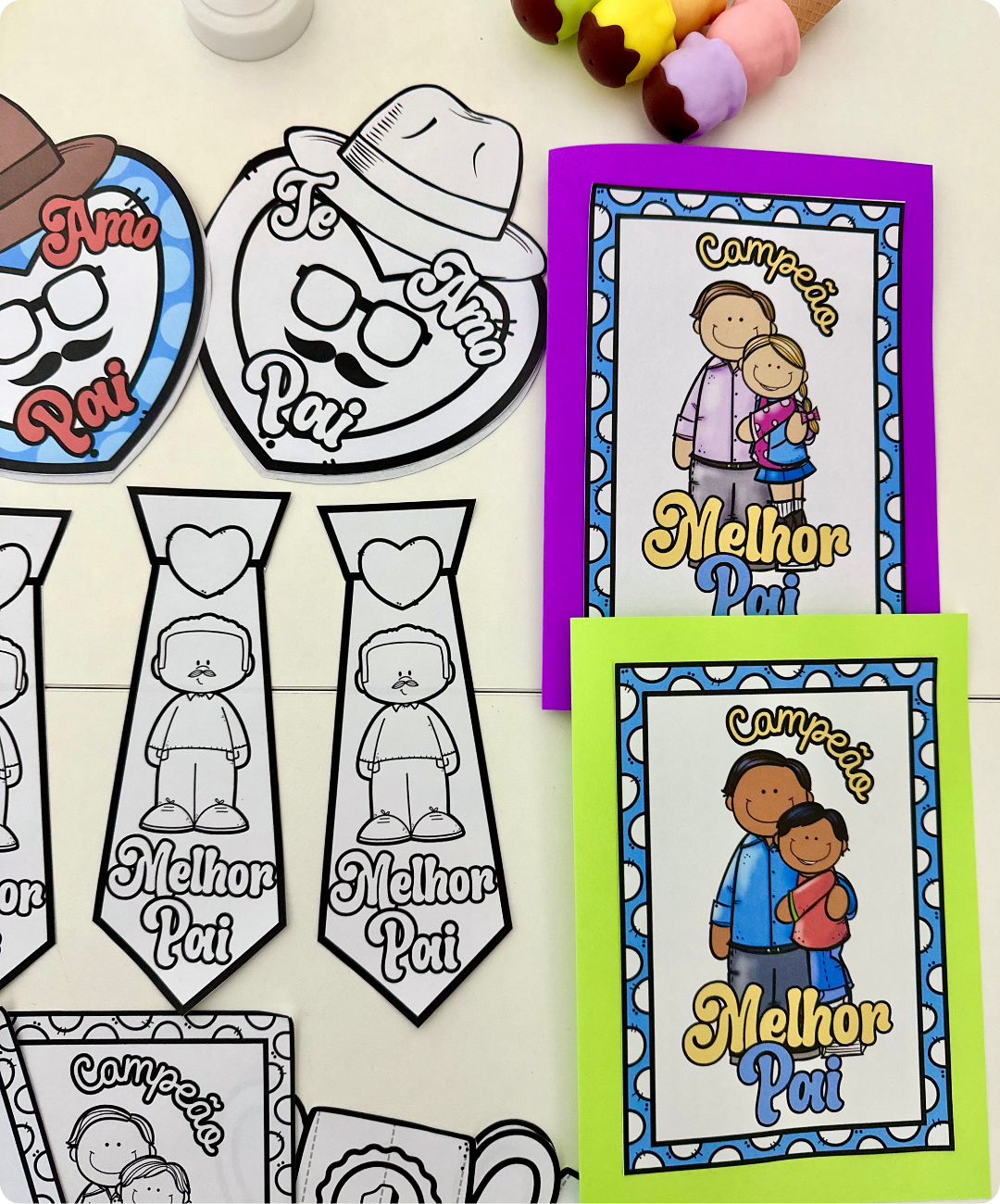Os cartões para o Dia dos Pais vão na opção colorida e para colorir.
