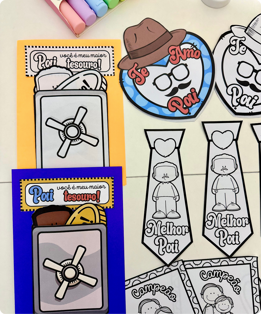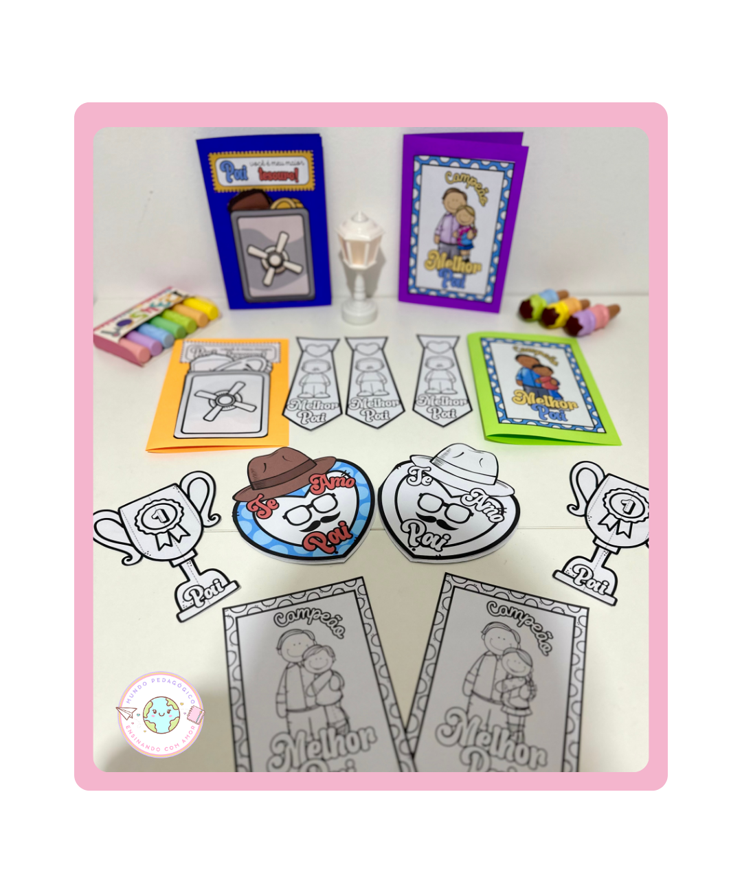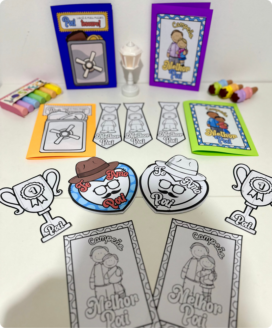 Os cartões para o Dia dos Pais vão na opção colorida e para colorir.
