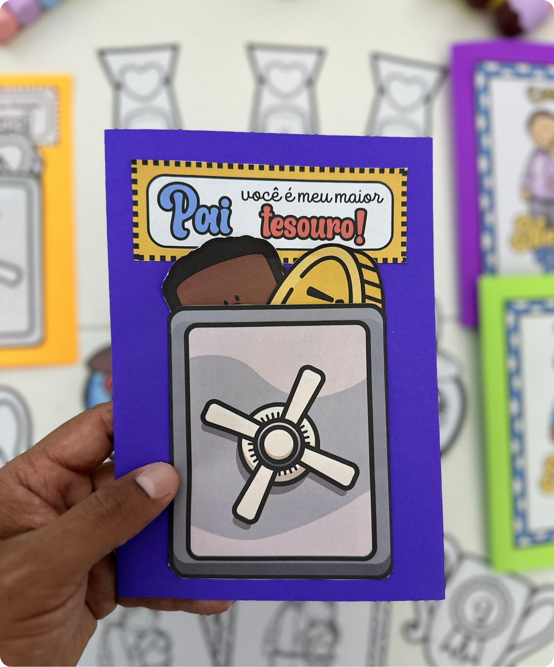 Nessas propostas o que se destaca é a produção da criança, pois a sugestão é que cada aluno crie o cartão de forma autêntica e explore suas habilidades manuais e gostos pessoais, transformando o cartão em uma criação única e afetiva.