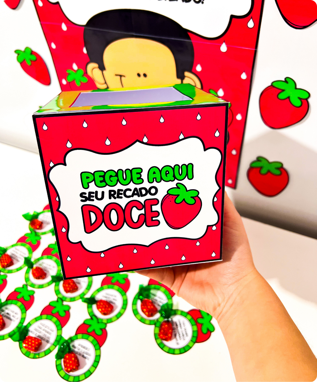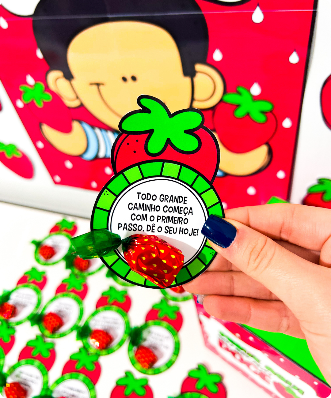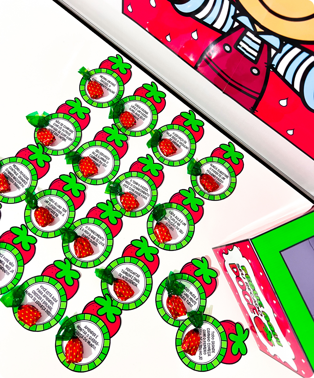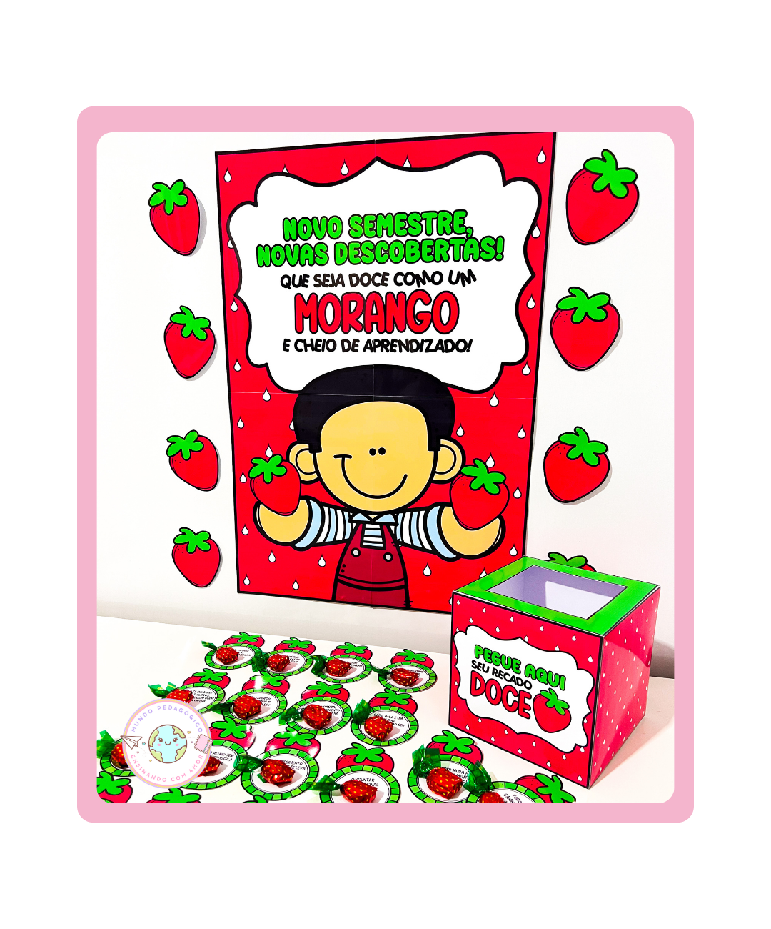 Arquivo pedagógico volta às aulas morango do amor em PDF pronto para impressão.