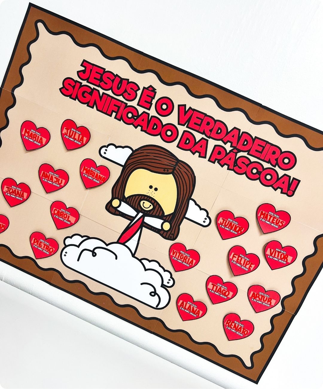 Transforme o ensino do verdadeiro significado da Páscoa em um momento inesquecível! Se você busca um recurso pedagógico cristão que une arte, colaboração e fé, este painel é a escolha perfeita para sua turma de Educação Infantil ou Ensino Fundamental.