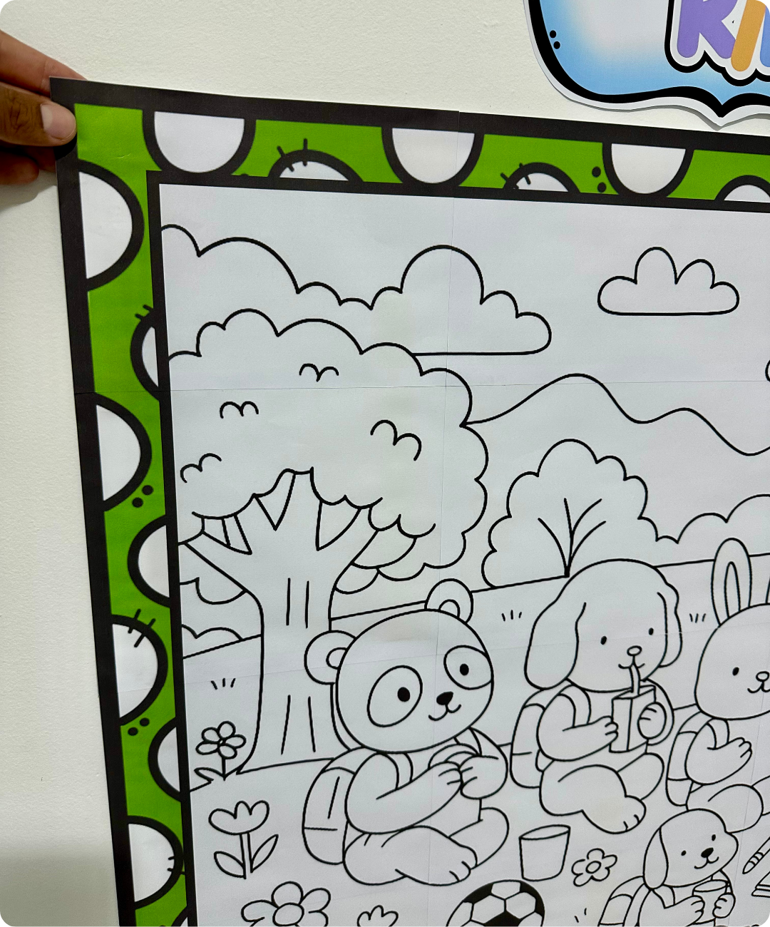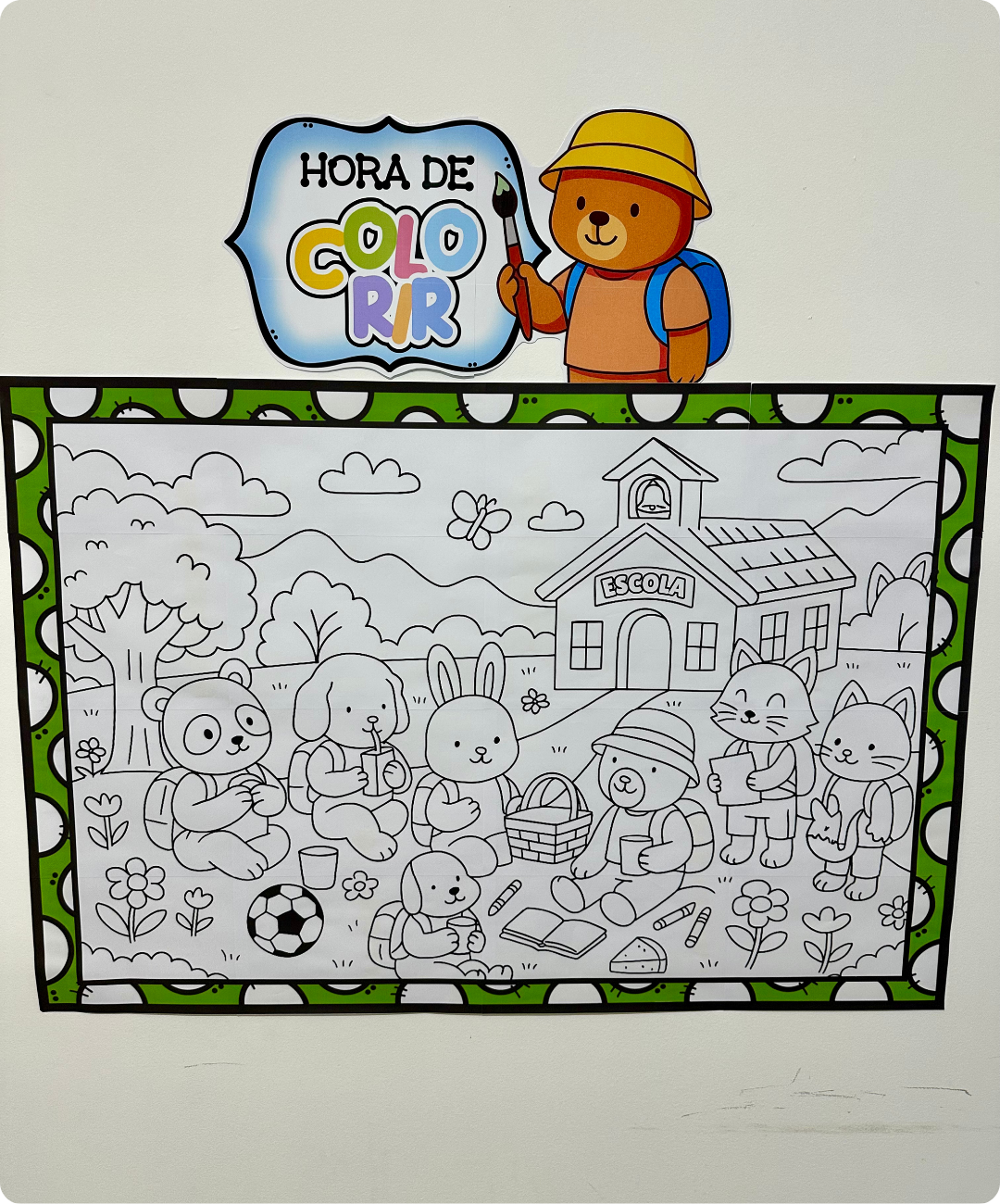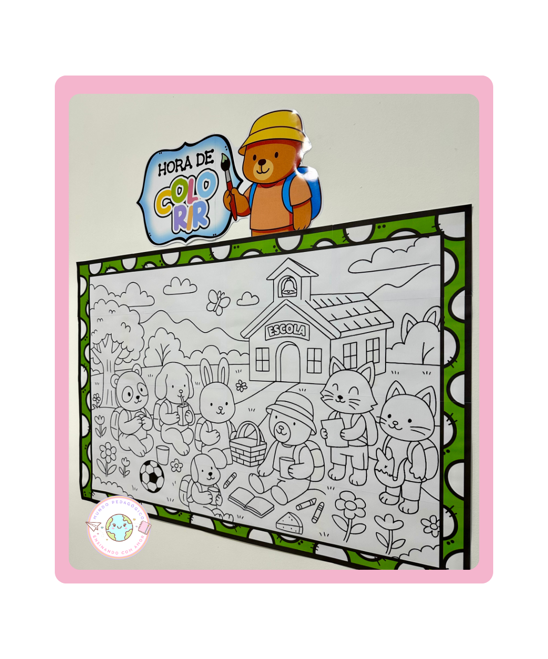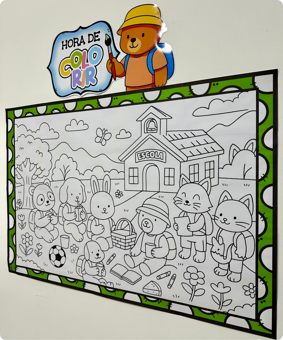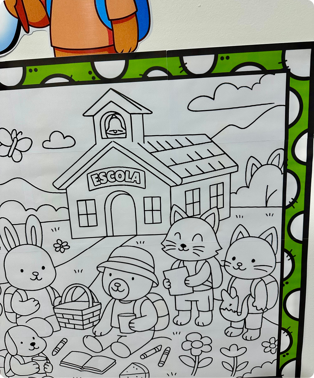 Painel para pintura Coletiva tema Volta às Aulas ideal para turmas da Educação Infantil e séries iniciais do Ensino Fundamental.