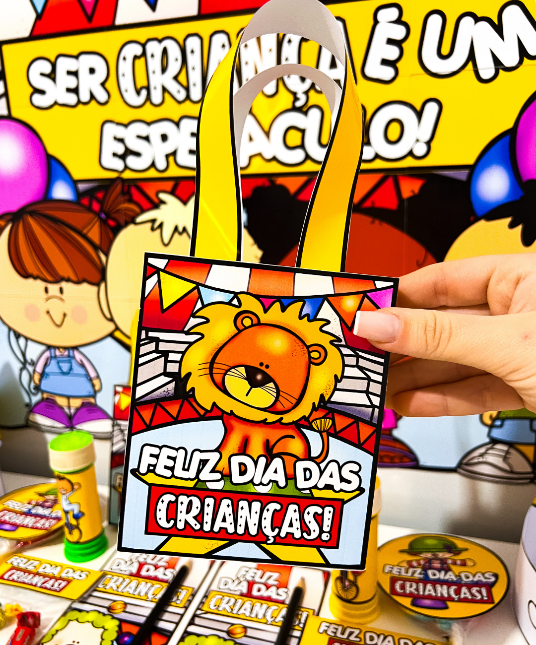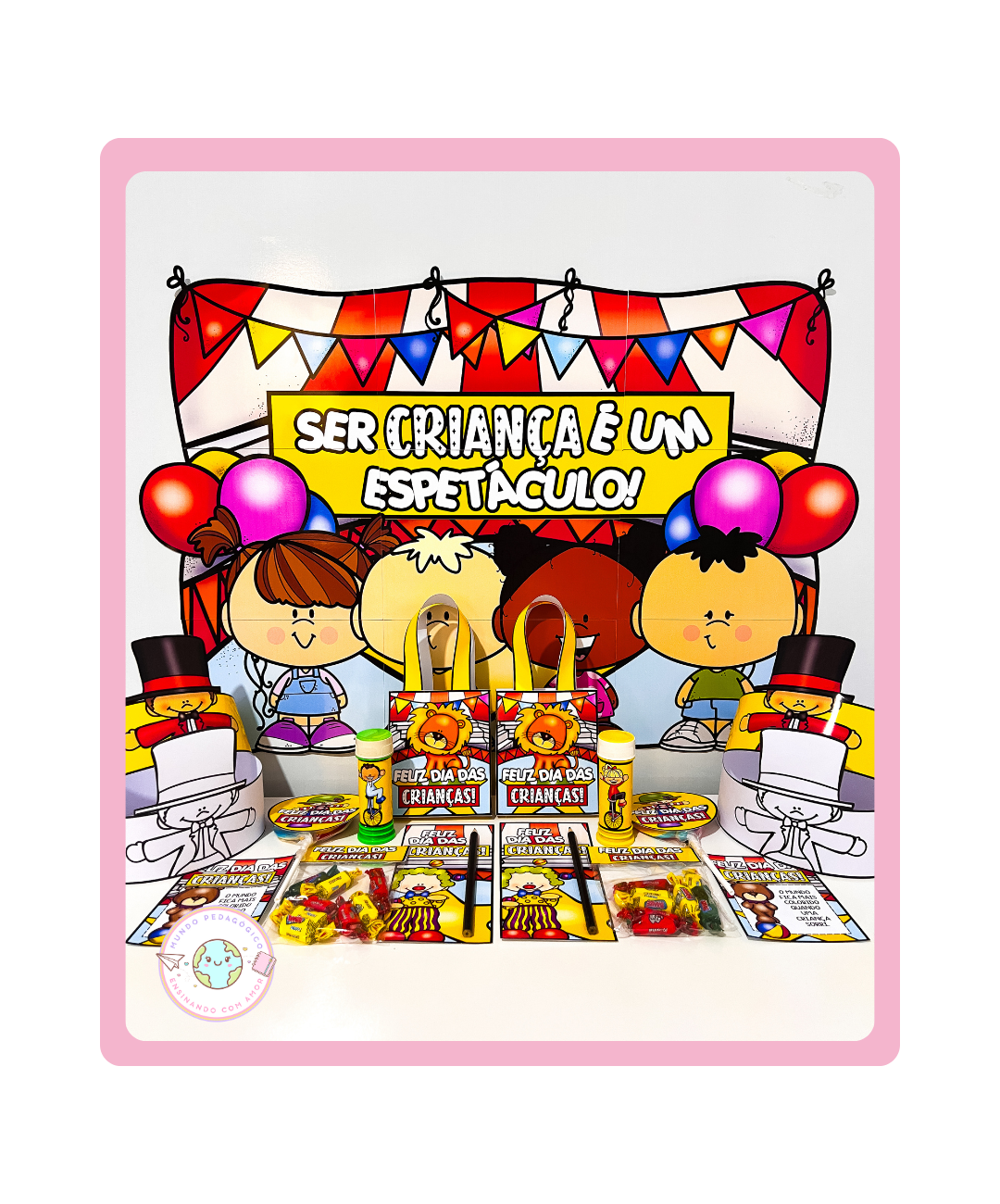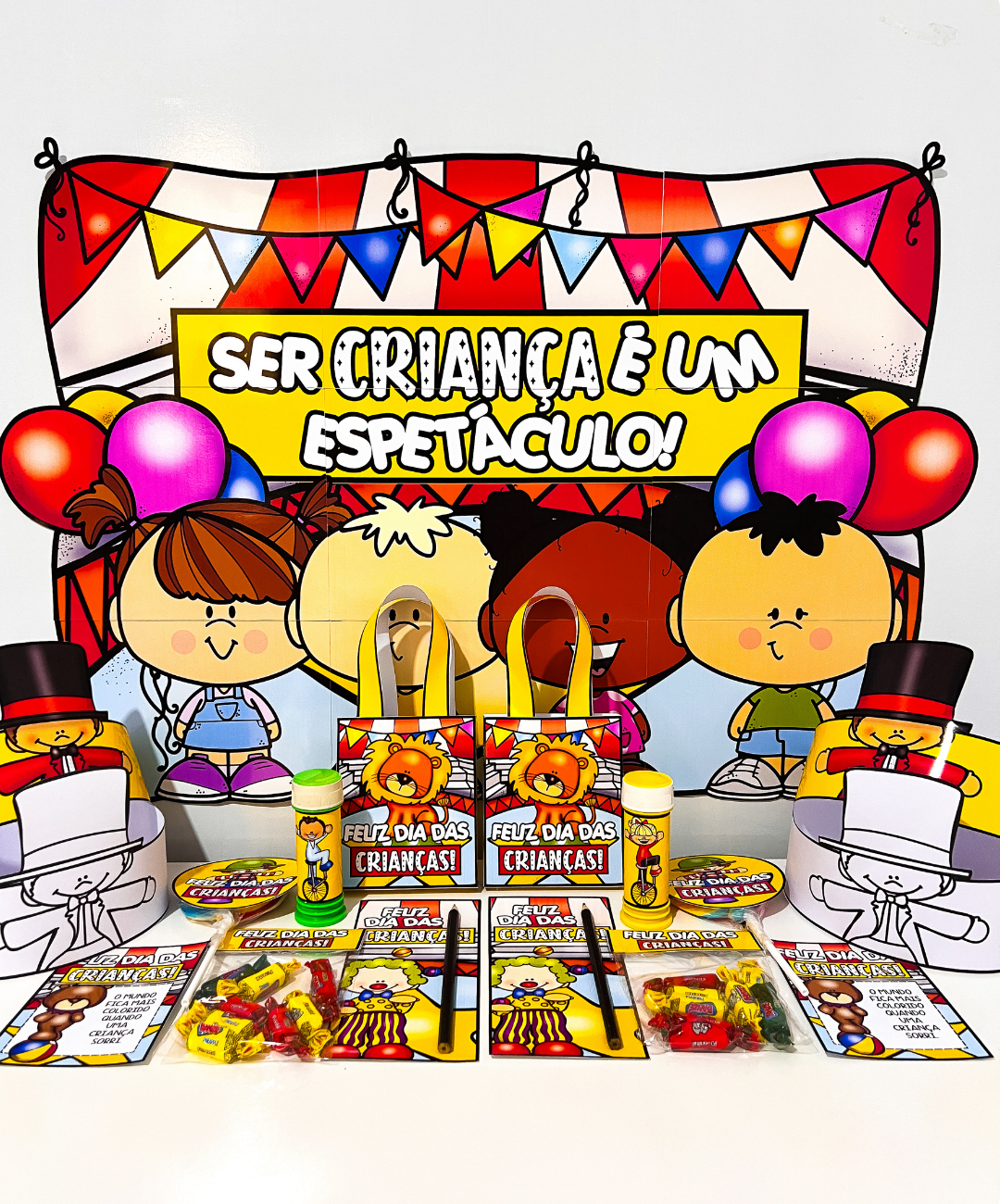 Transforme a comemoração do Dia das Crianças em um verdadeiro espetáculo com este kit cheio de cores, diversão e carinho! O material é todo no tema circo, com ilustrações alegres e coloridas que encantam os pequenos, trazendo a magia dessa data tão especial.