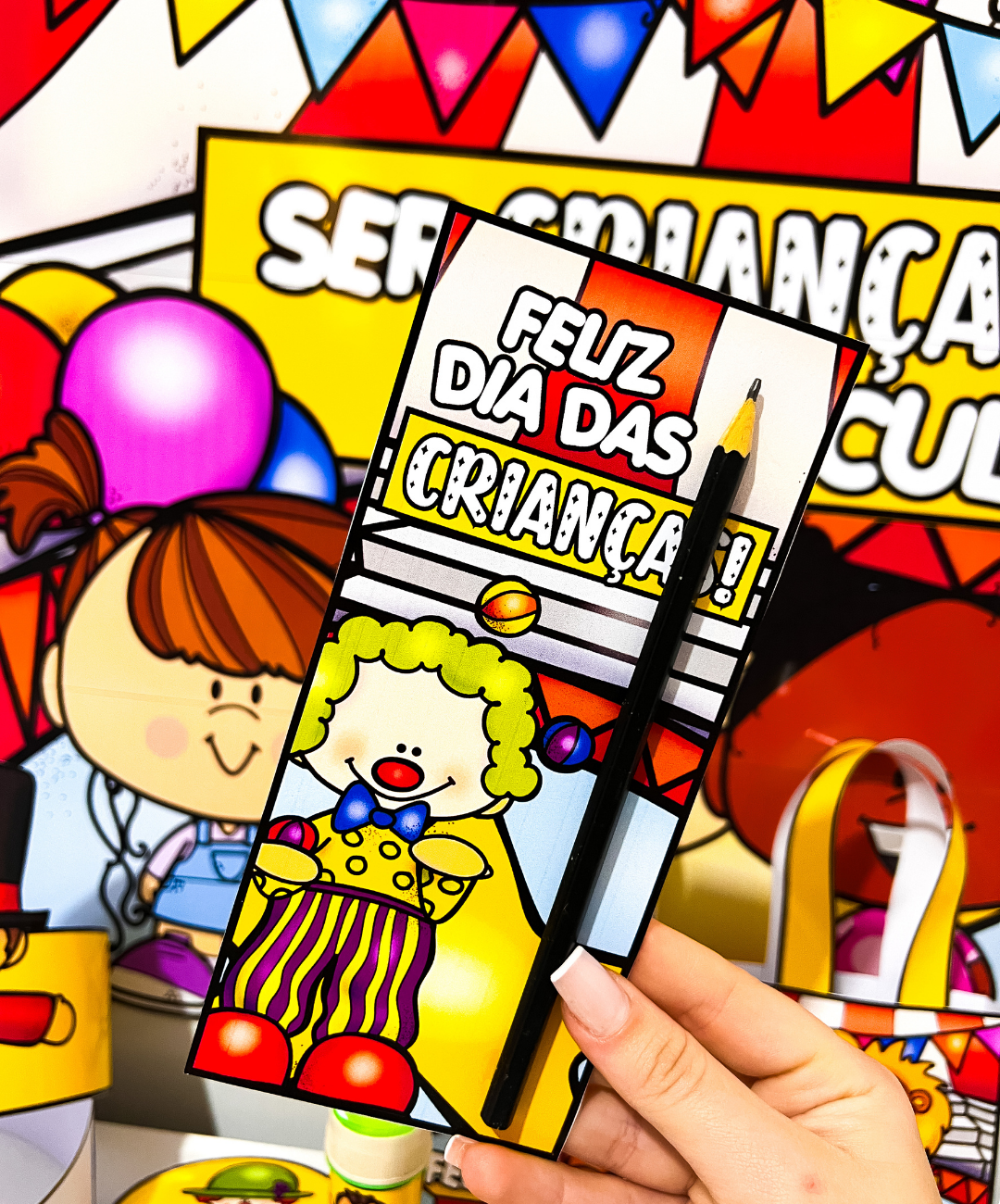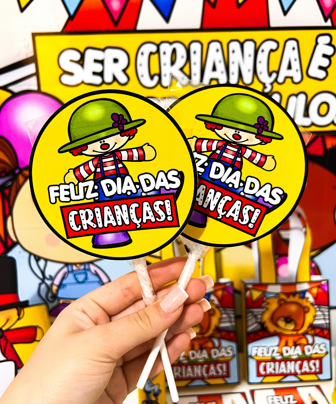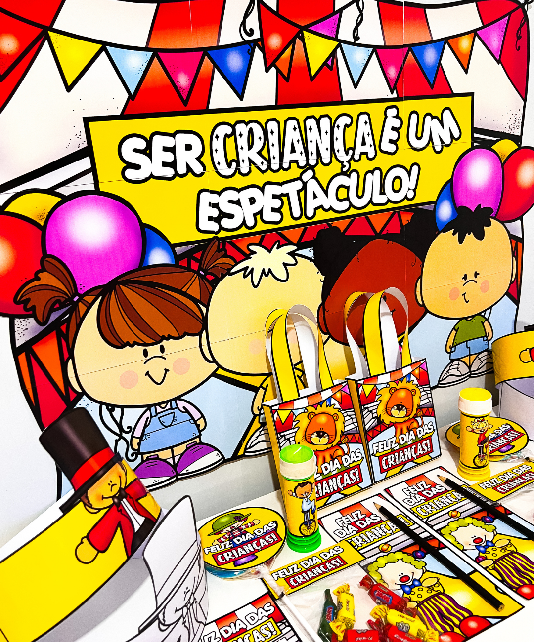 Transforme a comemoração do Dia das Crianças em um verdadeiro espetáculo com este kit cheio de cores, diversão e carinho! O material é todo no tema circo, com ilustrações alegres e coloridas que encantam os pequenos, trazendo a magia dessa data tão especial.